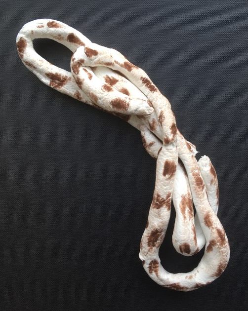 A dressing gown cord modelled from clay, based on the gown that Eve was wearing when she escaped. Her attacker had choked her, and threatened repeatedly to strangle her to death. Eve’s dressing gown and other property were only recently returned to her by the police, two and a half years after the attack